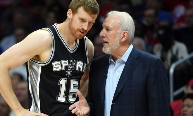有一场比赛,波波维奇没准备让邦纳上,叫了个暂停布置战术,所有人围上来安静听着。
