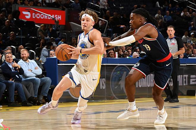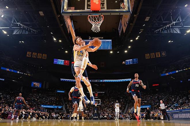 本场比赛中,勇士的替补后场新星布兰丁-波杰姆斯基(Brandin Podziemski)的表现还是值得肯定的。波杰姆斯基全场出场26分35秒,投篮10中5,三分线外6中2,得到了12分5篮板4助攻1抢断1盖帽的数据,还有1次失误,正负值为+10。波杰姆斯基在进攻端也是保持了不错的进攻效率并且通过各种方式拿下了不少分数,而且他在传球和组织方面也是能够起到很好的效果的。关键是波杰姆斯基很好地控制了自己的打法,他在进攻端的选择非常合理,并且起到了不错的效果。不仅如此,波杰姆斯基在防守端也是保持了很高的专注度,他给克里斯-保罗(Chris Paul)送出的大帽更是相当精彩。总体来看,至少在本场比赛中,波杰姆斯基的表现完全可以用攻守兼备来形容,他在场上的作用也是非常明显的。