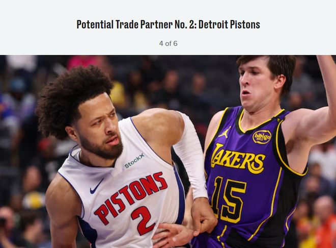 第二个交易对象是活塞,艾维右膝受伤、勒维尔腿筋问题,这个赛季活塞进攻出现问题,球队可以换到里夫斯搭档坎宁安解决这些问题,球队中的斯图尔特、霍兰德、杜伦都可以上谈判桌,而且活塞也手握未来多个首轮签。
