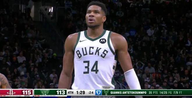 本场比赛,字母哥尽力了出战35分钟24投15中,三分1中0、罚球14中9拿到37分8篮板3助攻1盖帽,且有3失误。