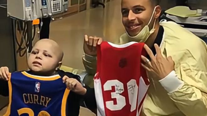 一周后,勇士客场挑战步行者,比赛前一天,库里瞒着所有人来到医院,想要给布罗迪一个惊喜。