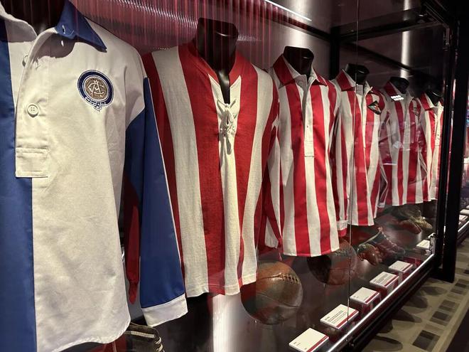 马竞的球场博物馆里,最先能看到的是有关传承的故事。无论是百年历史的老球票、老证件,还是一代代父母子女流传下来的老物件,都是作为珍贵文物放在玻璃柜中展出的内容。在球队历史的部分,最先展示的也同样是那些能让我们感受到人的气息的东西:球衣、球鞋,甚至是报纸头版和参赛证件。