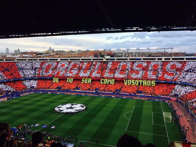 就像2017年那次马德里德比时,马竞打出的TIFO一样:Orgullosos de no ser cómo vosotros——Proud not to be like you,很自豪与你们不同。