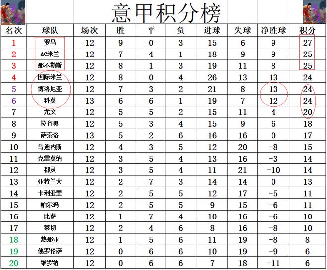 积分榜方面,罗马2分优势领跑,AC米兰,那不勒斯紧随其后,AC米兰1个净胜球优势排在第2。科莫这波11轮不败后,先赛的他们暂时追上国米和博洛尼亚,净胜球劣势还是排在第6,不过他们多尤文4分,第6的位置是坐稳了。
